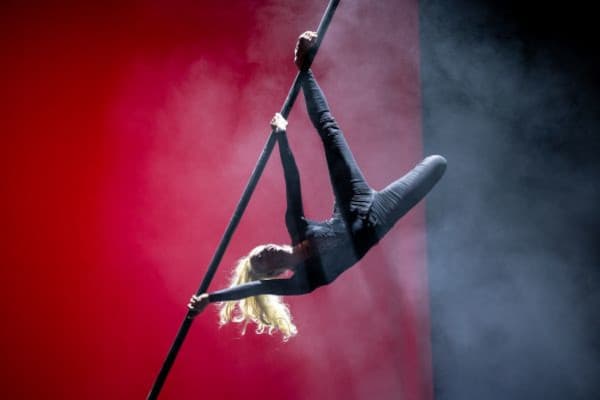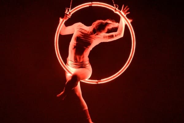 Showeinlage mit einer Artistin oder als Partnerakrobatik buchen. Geeignet für Gala, Firmenfeier, Varieté, Dinnershow.