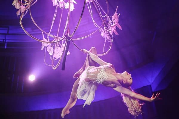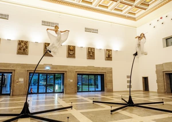 Showact mit einer Luftartistin oder als Duo buchen. Geeignet für Firmenfeier, Gala, Messe, Dinnershow, Varieté.